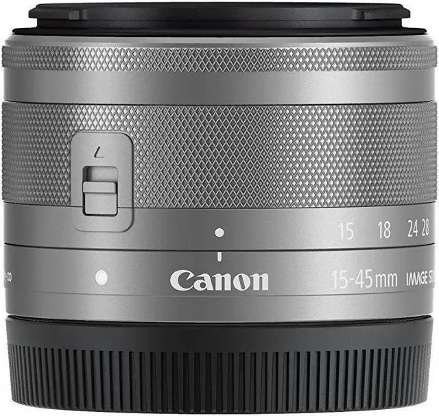 The Canon EF-M 15-45mm f/ 3.5 - 6.3 IS STM Lens (Silver) is a compact, stylish zoom lens for EOS M series digital cameras. A special retraction mechanism shortens the length of the lens to just 1.76 inches ( 44.5 mm) when the camera is off, to help make carrying and storing the lens and camera even easier. The quiet stepping motor (STM) design helps ensure low-noise focusing that's ideal for recording movies. The 35mm-equivalent 24'72mm range combines a wide angle for landscapes and big group photos, with a telephoto zoom for close-ups and detailed headshots.