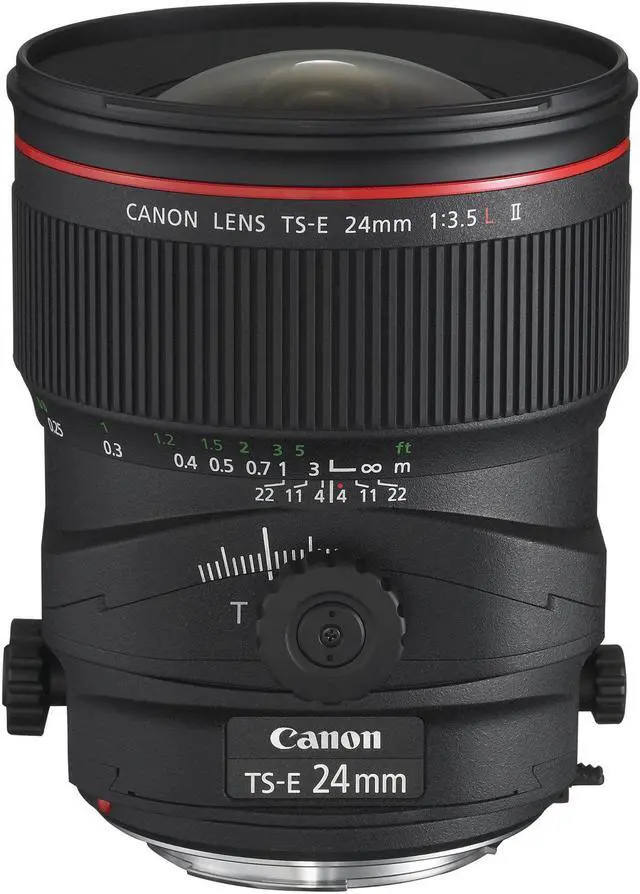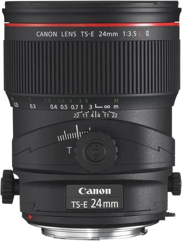 A superb refinement to a true Canon classic, the new TS-E 24mm f/ 3.5L II offers enhanced functionality and image quality in its most popular tilt-shift focal length. Designed with UD glass to minimize and compensate for chromatic aberrations and specially coated aspherical elements for the highest possible glare-free image quality, this tilt-shift lens features an angle of view of 74 degrees. New TS revolving lets users freely combine tilting and shifting within the range of +/- 90 degrees in the direction of movement. It has an enhanced range of movement of up to +/- 8.5 degrees, a revolving construction for both portrait and landscape shooting modes, locking, ergonomically designed and easily operated tilt and shift knobs, uses a circular aperture for beautiful out-of-focus areas, and is constructed using only lead-free glass and has an SWC lens coating that controls ghosting and flare to a far greater degree than earlier coating technologies.