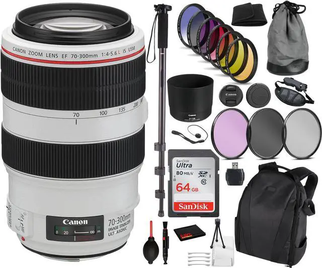 Canon EF 70-300mm f/4- 5.6L IS USM Lens Essential Bundle Kit for Canon EOS - International Model No Warranty