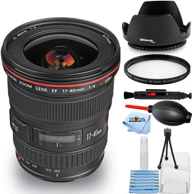 Spanning a versatile wide-angle range, the EF 17-40mm f/4L USM Lens is a Canon L-series zoom featuring a constant f/4 maximum aperture along with a sophisticated optical design and durable construction. One Super UD element is featured, along with three aspherical elements, which help to reduce both chromatic and spherical aberrations in order to realize high sharpness, clarity, and color accuracy. A Super Spectra coating has also been applied to suppress flare and ghosting for improved contrast in difficult lighting conditions. Complementing the imaging capabilities, this wide-angle zoom also features a ring-type USM and internal focusing mechanism to afford quick, quiet, and accurate autofocus performance, as well as full-time manual focus override. Additionally, this lens is weather-sealed for use in trying environmental conditions.