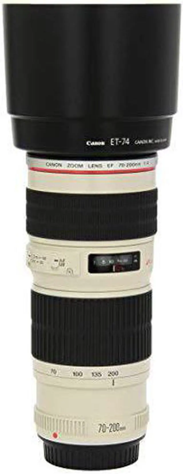 The Canon EF 70-200mm f/ 4.0L USM Lens is a high-performance, L-series telephoto zoom lens combining light weight and compactness with an f/4 maximum aperture. Inner focusing and the ring USM enable quick and quiet autofocusing. Also, a circular polarizing filter can be attached and used without difficulty because the front lens element does not rotate during focusing. The tripod collar (sold separately) is the same one used with the EF 300mm f/4L USM.