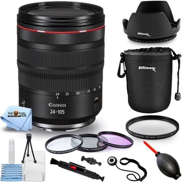 Prized for its versatility, the RF 24-105mm f/4L IS USM from Canon is a wide-angle to short telephoto zoom characterized by its constant f/4 maximum aperture. Ideal for use in nearly any shooting scenario, this zoom is benefitted by a five-stop-effective Image Stabilizer to minimize the appearance of camera shake for sharper handheld imagery. Also complementing handling is a unique customizable Control Ring, which can be configured to adjust a variety of exposure settings settings, including aperture, ISO, and exposure compensation. Benefitting image quality, the advanced optical design features a Super Spectra Coating, which helps to suppress ghosting and flare in order to improve contrast and color accuracy when working in bright and backlit conditions. Ideal for both photo and video applications, this lens also incorporates a Nano USM autofocus motor, which delivers quick, quiet, and precise focusing performance.