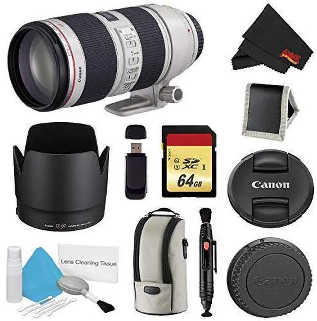 Bundle Items Include: Canon EF 70-200mm f/ 2.8L IS II USM Lens (International Model) E-77 II 77mm Lens CapLens Dust Cap E (Rear) ET-87 Lens HoodLZ1326 Lens CaseTripod Collar64GB UHS-I SDXC Memory Card (Class 10) Lens Pen CleanerSecure Digital USB Memory Card Reader5 Piece Lens Cleaning KitMemory Card WalletMicrofiber Cloth