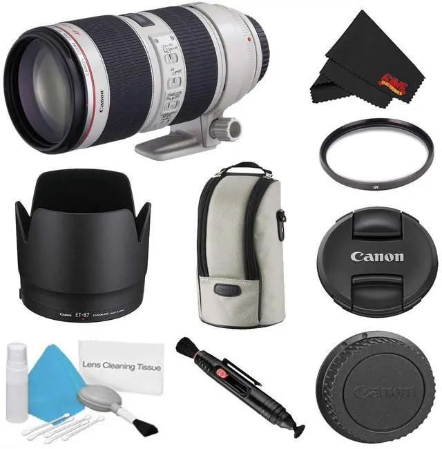 Bundle Items Include: Canon EF 70-200mm f/ 2.8L IS II USM Lens (International Model) E-77 II 77mm Lens CapLens Dust Cap E (Rear) ET-87 Lens HoodLZ1326 Lens CaseTripod Collar77mm UV Filter Lens Pen Cleaner5 Piece Lens Cleaning KitMicrofiber Cloth