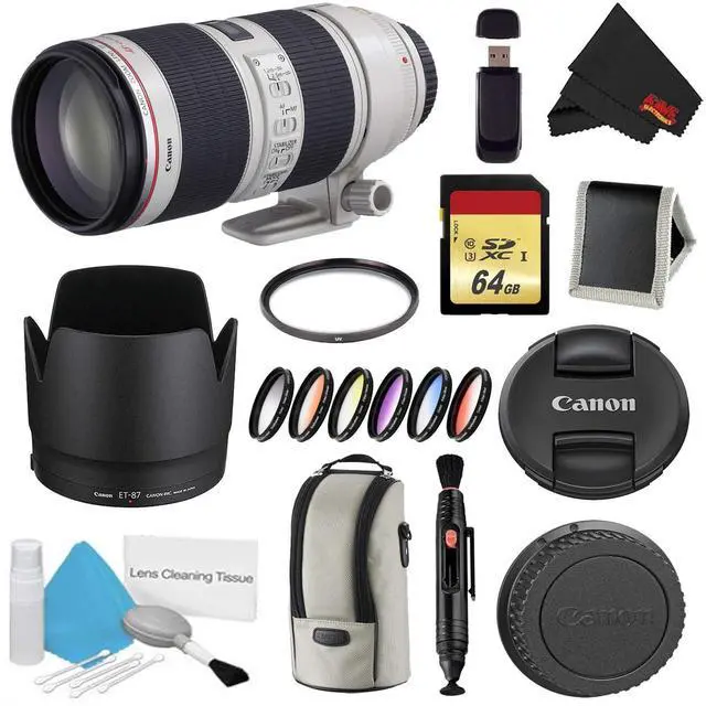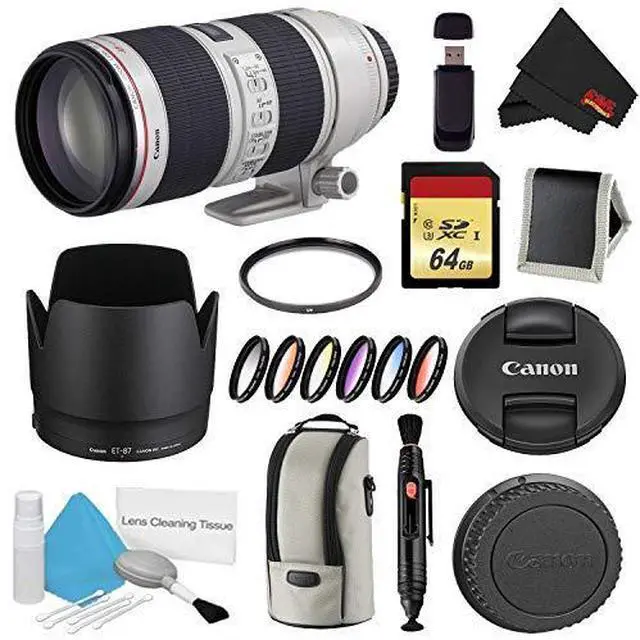 Bundle Items Include: Canon EF 70-200mm f/ 2.8L IS II USM Lens (International Model) E-77 II 77mm Lens CapLens Dust Cap E (Rear) ET-87 Lens HoodLZ1326 Lens CaseTripod Collar64GB UHS-I SDXC Memory Card (Class 10) 77mm Graduated Color Multicoated 6pcs Filter Set77mm UV Filter Lens Pen CleanerSecure Digital USB Memory Card Reader5 Piece Lens Cleaning KitMemory Card WalletMicrofiber Cloth