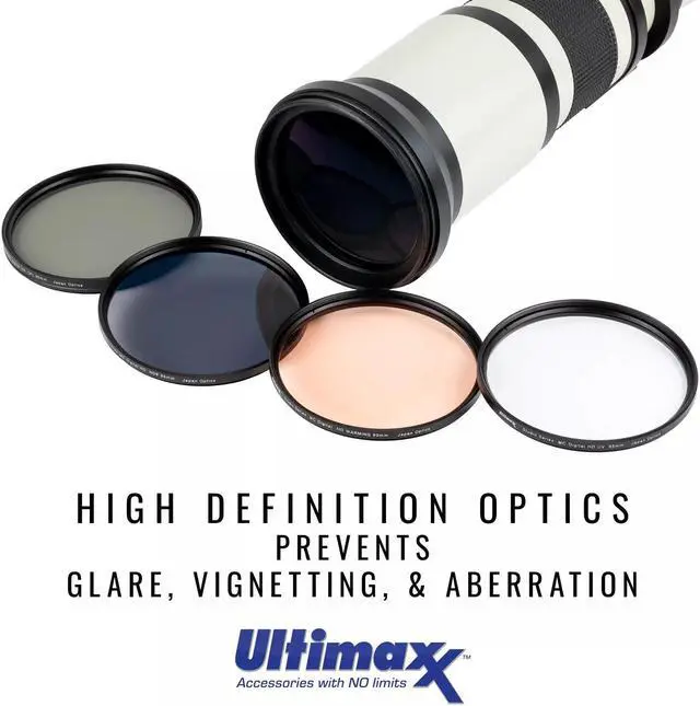 Ultraviolet (UV) Filter: Absorbs the UV rays from the sun and gives a sharper contrast and vivid picture. Serves as a permanent lens protector against scratches, dust, moisture and fingerprints.