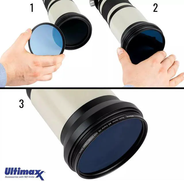 Neutral Density (9x) Filter: Used to control the depth of field and illustrate the movement of waterfalls, rivers, clouds, and cars more easily.