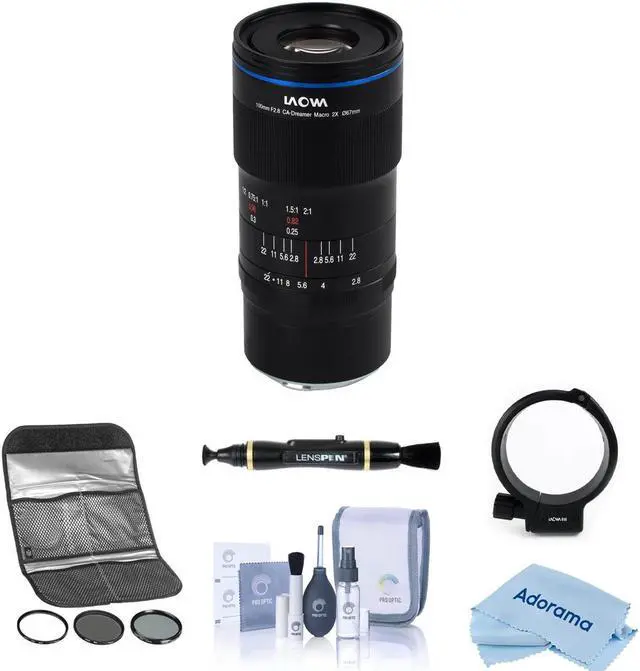 The bundle enhances your photography experience with essential accessories: a Hoya 67mm Digital Filter Kit II to protect and enhance your images, a Laowa Tripod Collar for added stability, a Lens Cleaner and Cleaning Kit for maintenance, and a Microfiber Cloth to keep your lens spotless. Choose the Laowa 100mm f/ 2.8 2X Ultra Macro APO Lens for Nikon Z bundle for a comprehensive, high-quality, and versatile macro photography solution that delivers professional results and unparalleled convenience.