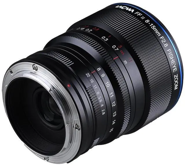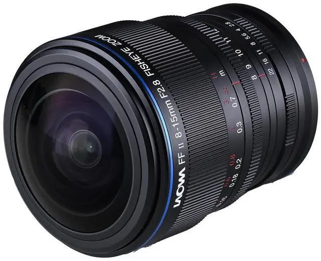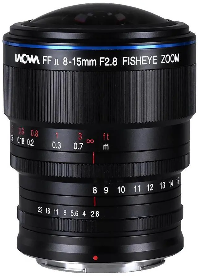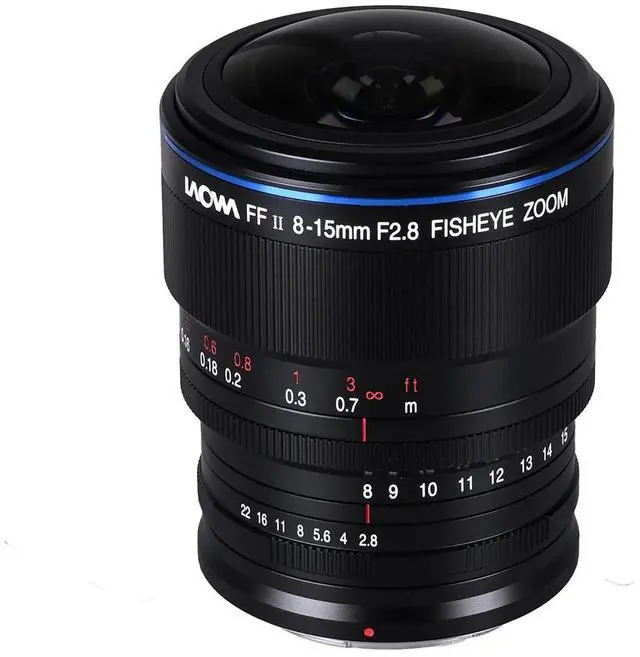 It allows for a shallow depth of field, enabling photographers to isolate subjects with a pleasing background blur, enhancing the fisheye's dramatic effect for portraits or action shots. 6.3" /16cm Closest Focusing DistanceThe Laowa 8-15mm f/ 2.8 FF Zoom Fisheye Lens features a minimum focusing distance of 16cm ( 6.3" ), enabling photographers and videographers to capture subjects at close range with striking visual impact. This close focusing capability enhances the lens's fisheye distortion, delivering an exaggerated point of view (POV). Additionally, the close focus mimics a bugeye effect, creating a playful, almost cartoonish distortion where subjects appear disproportionately large, adding a unique and bold aesthetic to images and videos. Compact HousingThe Laowa 8-15mm f/ 2.8 FF Zoom Fisheye Lens is remarkably compact. This portable design makes it one of the smallest and lightest full-frame fisheye zoom lenses with a constant f/ 2.8 aperture, ideal for travel, adventure, and handheld shooting. Perfect for landscape photographers, vloggers, and drone-based creators, this lens delivers bold fisheye visuals without the bulk, enhancing mobility and convenience for on-the-go content creation.