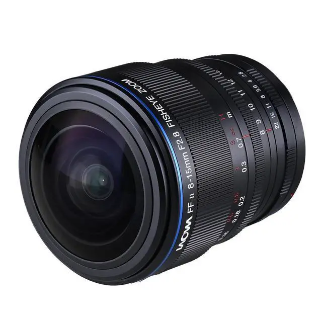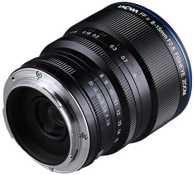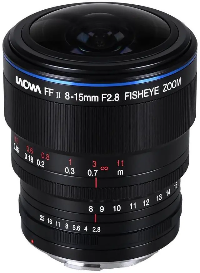 It allows for a shallow depth of field, enabling photographers to isolate subjects with a pleasing background blur, enhancing the fisheye's dramatic effect for portraits or action shots. 6.3" /16cm Closest Focusing DistanceThe Laowa 8-15mm f/ 2.8 FF Zoom Fisheye Lens features a minimum focusing distance of 16cm ( 6.3" ), enabling photographers and videographers to capture subjects at close range with striking visual impact. This close focusing capability enhances the lens's fisheye distortion, delivering an exaggerated point of view (POV). Additionally, the close focus mimics a bugeye effect, creating a playful, almost cartoonish distortion where subjects appear disproportionately large, adding a unique and bold aesthetic to images and videos. Compact HousingThe Laowa 8-15mm f/ 2.8 FF Zoom Fisheye Lens is remarkably compact. This portable design makes it one of the smallest and lightest full-frame fisheye zoom lenses with a constant f/ 2.8 aperture, ideal for travel, adventure, and handheld shooting. Perfect for landscape photographers, vloggers, and drone-based creators, this lens delivers bold fisheye visuals without the bulk, enhancing mobility and convenience for on-the-go content creation.