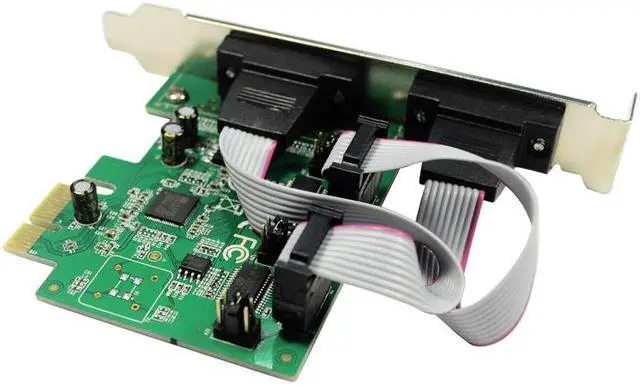 Product name Combo 2 DB-9 Serial (RS-232, COM) + 1 DB-25 Parallel Printer Ports (LPT1) PCI-e Controller CardAX99100 ChipsetProduct model IO-PCE99100-2S1PProduct description 1.Features 1). PCI Express. Single-lane (X1) PCI Express End-point Controller with PHY integrated. Compliant with PCI Express 2.0 Gen 1. Compliant with PCI Express card specifications. Compliant with PCI Power Management 1.2 . Supports both legacy and MSI Interrupts. Supports ASPM Power ManagementPlease note some sections of the manual are only applicatable for the production that have such functions.2). Serial Port . Dual or Quad UARTs . Supports RS-232. Bi-directional speeds up to 25 Mbps per port Full Serial Modem Control . Supports Hardware, Software Flow Control . Supports 5, 6, 7, 8 and 9-bit Serial format . Supports Even, Odd, None, Space and Mark parity. Supports On Chip 256 Byte depth FIFOs in Transmit, Receive path of each Serial Port . Supports remote wakeup and power management features. Serial Port transceiver shutdown support . Supports Slow IrDA mode (up to 115200bps) on all Serial Ports. Supports multi-drop application for 9-bit mode. Provides RS-232 serial ports with +5 or +12 VDC power output via COM 1st or 9th pin. Supports DMA burst transfer. Operating temperature range: 0 to 70C or -40 to +85C option. Support special baud rate option3). IEEE1284 Parallel Port . Compatible with IEEE 1284-SPP/Byte/ECP Mode2. Applications . Serial Attached Devices. Serial Networking/Monitoring Equipment. Data Acquisition System. POS Terminal & Industrial PC. Add-On I/O Cards -Serial /USB. Embedded systems - For I/O expansion3. Software Support . Windows XP/2003 Server/Vista/7/8.x/10. Linux Kernel 2.6.15 and later. Android 1.x/2.x/3.x/4.x/5.x