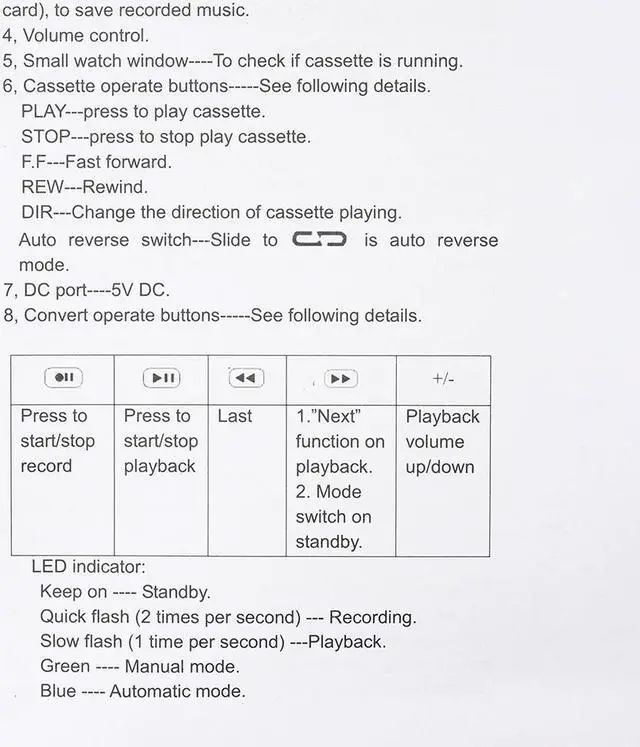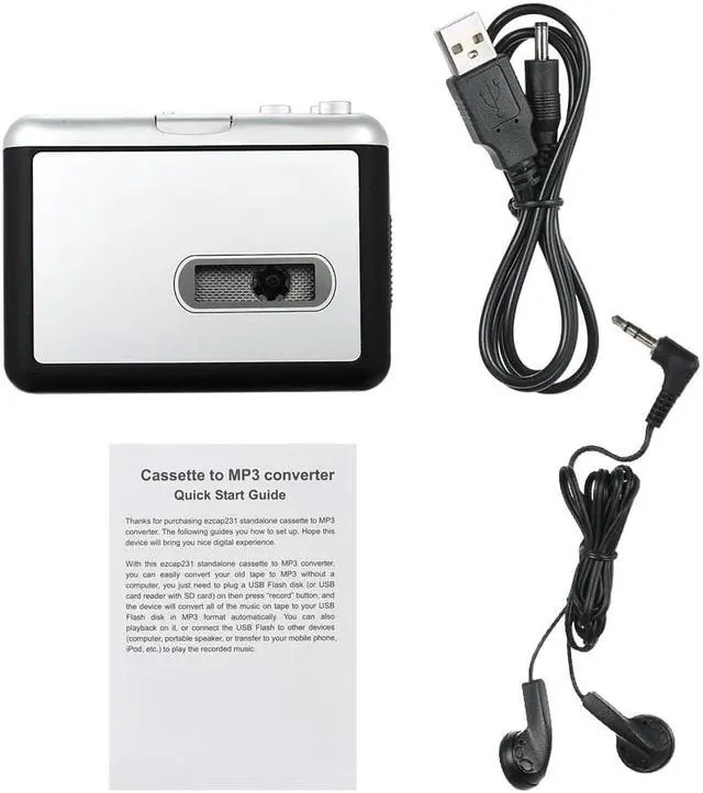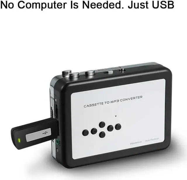 Specification:Converter format: MP3Power supply: 2 * AA battery, any USB port power supply(5V DC adapter, USB from computer,etc)Format of USB flash: Support FAT, FAT 32, ex FAT Working Time: 2 hours with 2 * AA batteryAudio channel: Stereo L/RBit rate:128KbpsItem size: 11 * 8.2 * 3cm / 4.33 * 3.23 * 1.18in(L * W * H)Item weight: Approx.186g / 6.55 ozPackage size: 15 * 10.8 * 3.8cm / 5.91 * 4.25 * 1.5in(L * W * H)Package weight: 253g / 8.93 oz With this portable and compact cassette to MP3 converter, you can easily convert your old tape to MP3 without a computer. It will directly store your music in tape to USB flash disk.Also, the device can convert in MP3 format automatically. You can also connect the USB drive to other devices, including computer, speaker or transfer to your mobile phone to play the recorded music.Features:Easily Convert Tape to MP3 This device can easily convert your old tape to MP3 without using a computer. Quite convenient for you to quickly enjoy music.Multifunctional Music RecorderYou can also connect it to radio and speaker system by cassette tape to convert the record into MP3 music.Portable & Compact DesignDesigned with sleek and lightweight outlook, the tape converter can virtually fit in your bag without taking up much space. Playback FunctionThe device includes playback function so you can easily check the recorded file.Convenient UseIndependent operation makes sure that on other device is needded to convert. Just plug the USB disk in and convert instantly.
