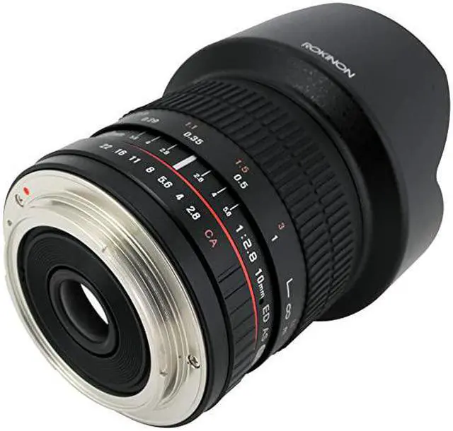 Style: Canon's 10mm F 2.8 Ultra Wide Angle Lens is the newest addition to its highly regarded assortment of prime, fixed mount, wide angle lenses. Specifically designed for APS-C cameras, it utilizes a Nano Crystal Anti-Reflection Coating System, Aspherical Lens Elements and Extra Low Dispersion Glass to provide a high performance frame filling ultra wide view equivalent to a 15mm lens (16mm for Canon APS-C DSLRs) on a full frame camera. The 106 degree angle of view with its fast f/ 2.8 aperture provides the performance required by architectural and landscape photographers to capture dramatic perspectives while its extreme depth of field and 9.5 (. 24m) close focus capability allow commercial photographers and journalists working in tight spaces to get that needed shot. For full frame Canon cameras, see 's Canon EF Type 14mm F 2.8 lens.