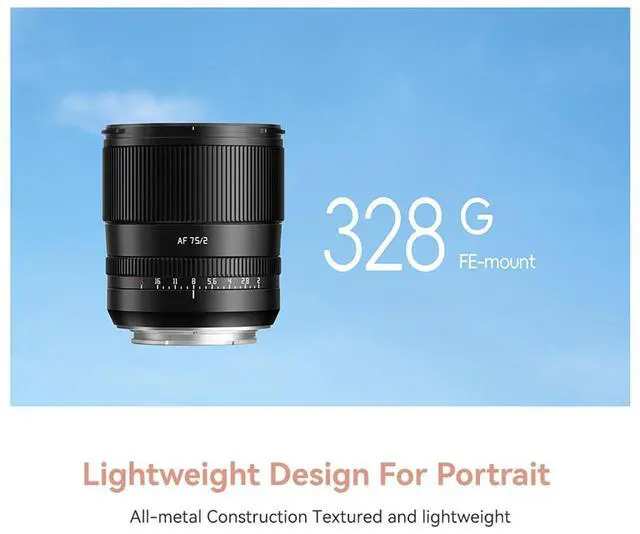 Lightweight and Durable DesignDespite being a full-frame lens, the TTArtisan AF 75mm F2 is remarkably lightweight, weighing just 328-340g. Its compact design makes it easy to carry, whether you're shooting outdoors or holding the camera for extended periods. The all-metal construction not only enhances the durability of the lens but also provides a premium feel and texture. Superior Optical PerformanceThis lens features an advanced optical structure with 10 elements in 7 groups, including 1 Extra Low Dispersion (ED) element and 4 high-index elements. These components work together to effectively reduce dispersion and chromatic aberration, resulting in exceptional image quality.