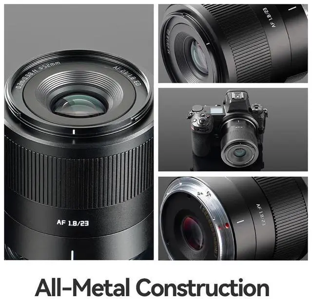 The lens body is made of 5052 aviation-grade aluminum, enhancing durability and offering a sleek texture that perfectly matches your camera.