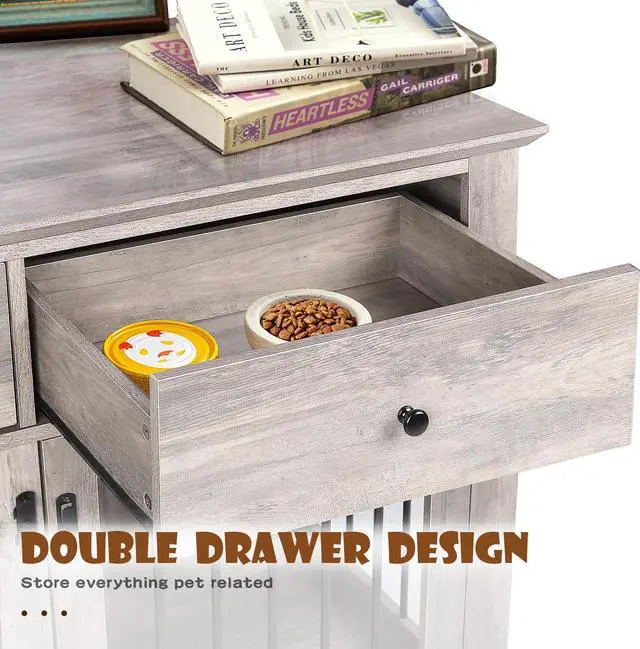 Large Table Top & Storage Drawer: The top panel of the dog cage is large and sturdy, and can hold up to 150 lbs, perfect for displaying home decorations such as plants, magazines, and family photo frames. And below the countertop are two large drawers.