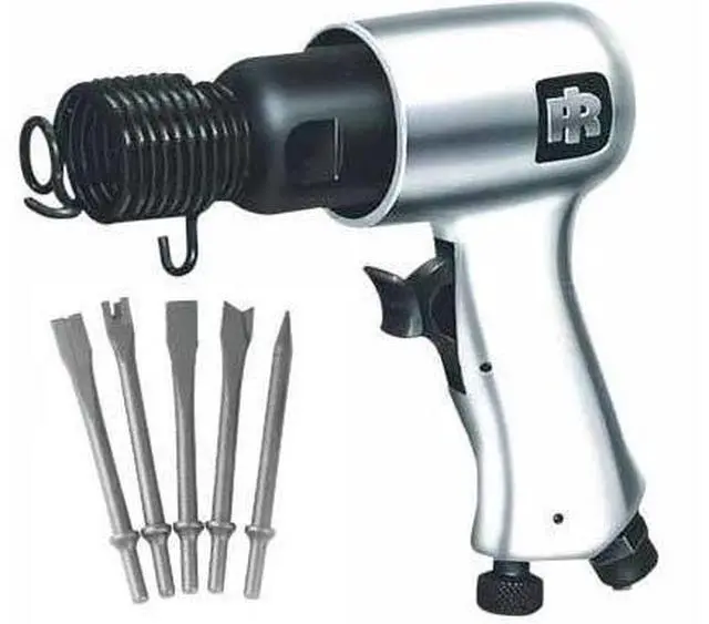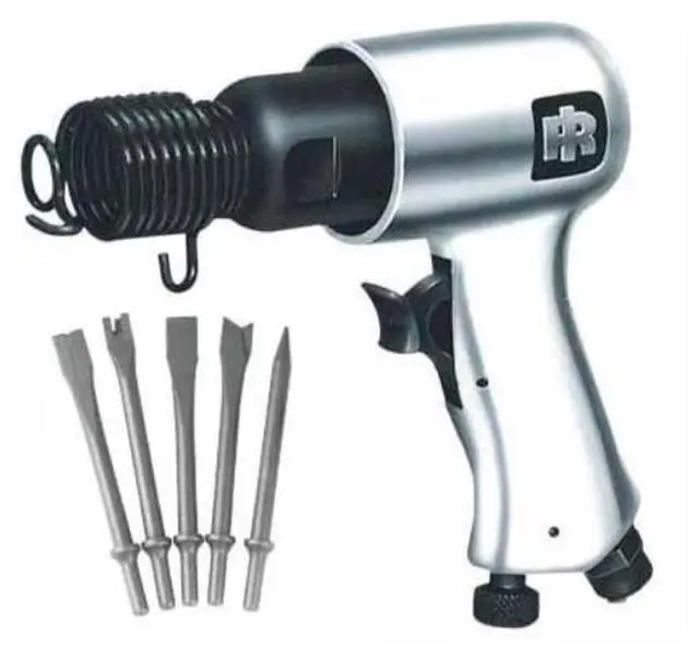 Features For light exhaust work, general cutting, chipping and scraping Built-in power regulator and trigger control What's in The Box Standard Duty Air Hammer Edging Tool Tail Pipe Cutter Straight Chisel Cutting Chisel Punch Owner's Manual Warranty 1-Year Limited Factory Warranty 30 Day Satisfaction Guaranteed Specifications Blows Per Minute (BPM) 5, 000 Air Consumption (CFM) 2 CFM at Load 14 Stroke Length (in. ) 1 - 5/8 Bore Diameter (in. ) 3/4 Shank Diameter (in. ) 0.401 Air Inlet Size (in. ) 1/4 Tool Length (in. ) 6 - 1/8 Min.