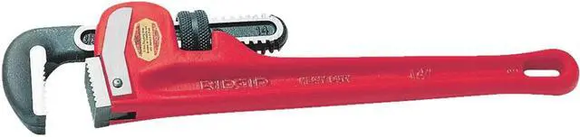 Replaceable jaws of hardened alloy steel. Full floating hook jaw gives instant grip and release. Handy pipe scale and easy-to-spin adjusting nut. Comfort-grip, malleable iron I-beam handle.