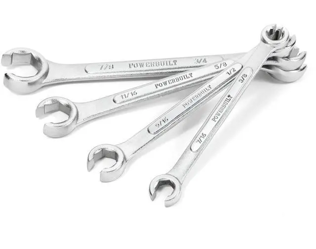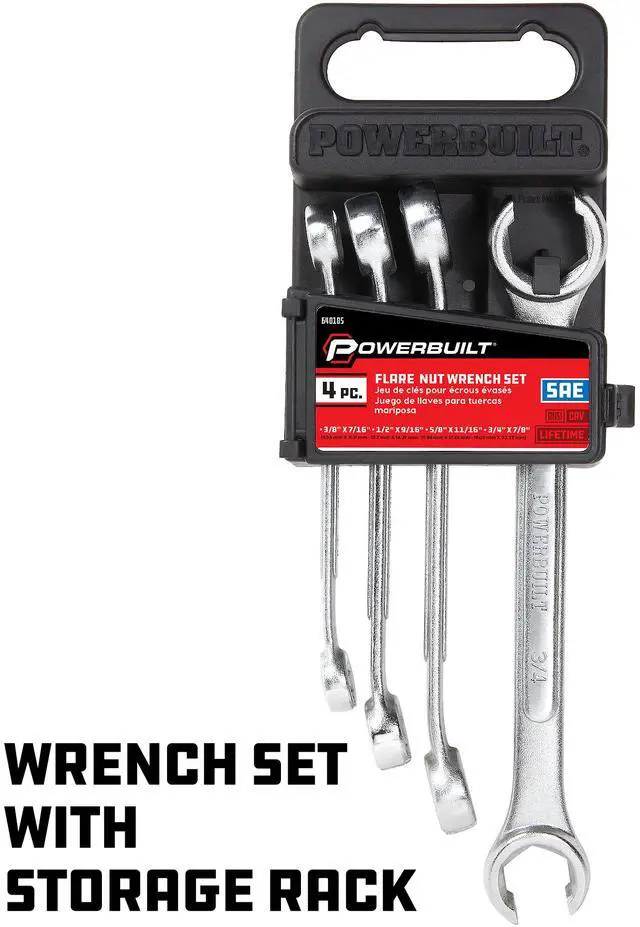 Powerbuilt 4 Piece/ 8 Size SAE Flare Nut Wrench Set, 3/8-Inch to 7/8-Inch