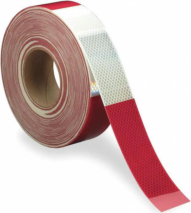 Premium Grade Reflective Tape, Reflective Color Red, White, Width 2 in, Length 50 yd, Adhesive Material Acrylic, Backing Material Retroreflective Microprismatic Material, Thickness 16 mil, Adhesion Strength 2.5 lb/in (FRP), 3.0 lb/in (Tedlar (R) ), 3.0 lb/in (Prepainted Panel), 3.5 lb/in (Aluminum Rail), 5.3 lb/in (Degreased Aluminum), 6.0 lb/in (Stainless Steel), Outdoor. This item has been restricted from sale in the following state (s): []