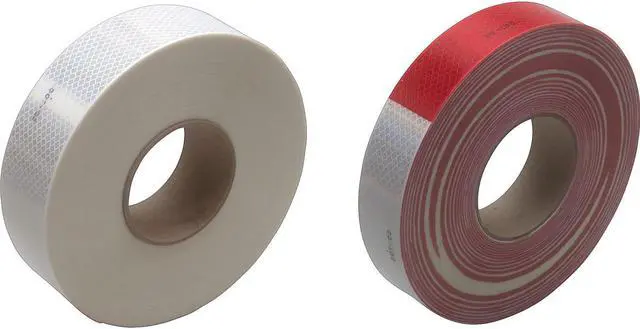 Premium Grade Reflective Tape, Reflective Color Red, White, Width 2 in, Length 50 yd, Adhesive Material Acrylic, Backing Material Retroreflective Microprismatic Material, Thickness 16 mil, Adhesion Strength 2.5 lb/in (FRP), 3.0 lb/in (Tedlar (R) ), 3.0 lb/in (Prepainted Panel), 3.5 lb/in (Aluminum Rail), 5.3 lb/in (Degreased Aluminum), 6.0 lb/in (Stainless Steel), Outdoor. This item has been restricted from sale in the following state (s): []