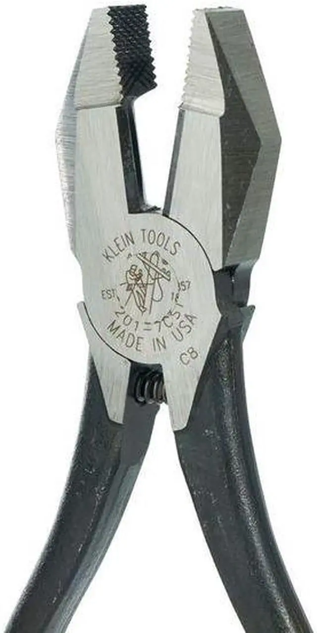 Pliers, Linemans Pliers, Iron Workers Plier, Jaw Length 1 9/32 in, Jaw Width 1 5/32 in, Jaw Thickness 1/2 in, Overall Length 9 1/8 in, Handle Type Plain, Material Steel, Tether Capable, Nonsparking No, Insulated No, High Leverage No, Wire Crimper No, Fish Tape Puller No, Spring Return Yes, Features