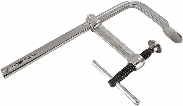 The Wilton 1800S-12 12 in F-Clamp is a regular duty bar clamp that is ideal for welding, metalworking, woodworking and plumbing. The 1 x 15/32" extruded steel bar has a replaceable V-groove pad and an adjustable handle. This f-clamp has a hex head swivel and can be used on rails measuring 1 in. wide. This Wilton F-Clamp will make your work easier.. This item has been restricted from sale in the following state (s): []