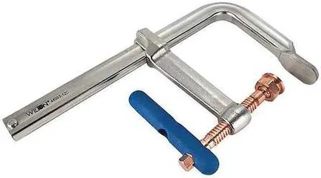 The Wilton 12 in F-Clamp is the versatile tool you need for welding, metalworking, woodworking, plumbing and automotive applications. The heavy duty f-clamp has a copper plated steel handle and 7 in throat depth. It has a replaceable V-groove pad type that protects your work surface from damage. This bar clamp features an extruded steel bar with 1 9/16" x 25/32" nominal rail size. The F clamps have a 1 9/16" bar width and 12 in opening. With its many uses, the Wilton 12 in F Clamp will prove to be the most valuable tool on hand when it comes to your next project.