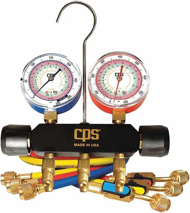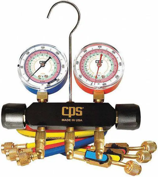 Mechanical Manifold Gauge Set, Number of Valves 2, Multiple Refrigerants, Number of Hoses 3, 60 in, 0 to 800 psi, 30 in Hg to 500 psi, +/- 1.60 Percent, 1/4 in, Aluminum, UL/SAE, Includes Ball Valve Hoses. This item has been restricted from sale in the following state (s): []