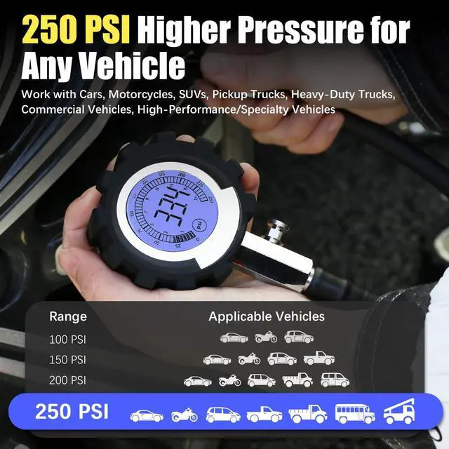 ![]() 250 PSI PRO Tire Gauge | ![]() 200 PSI Tire Gauge | ![]() 100 PSI Mini Tire Gauge | ![]() 100 PSI Tire Gauge |