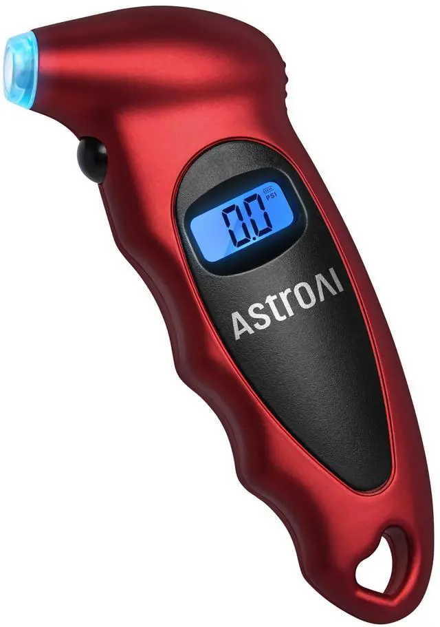 SEAMLESS TESTING IN DIM AREAS: The AstroAI Digital Tire Pressure Gauge is equipped with an illuminated nozzle and backlit LCD screen. Use the illuminated nozzle to find the car valve stem in dim light. It easily forms a seal with the valve stem, and gives accurate measurements.