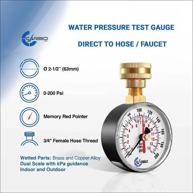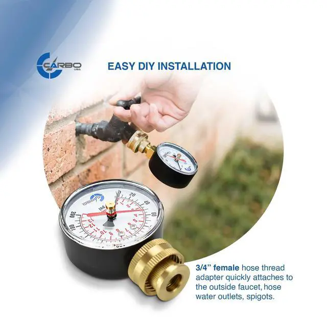 CARBO’s 2.5" Water Pressure Gauge is clear in low light or rain. One gauge, endless uses: perfect for sprinklers, RO, hoses, & more. 0-200 PSI, 10,000+ cycles, rust-free. Easy 3/4" hose thread. For home, garden, RV