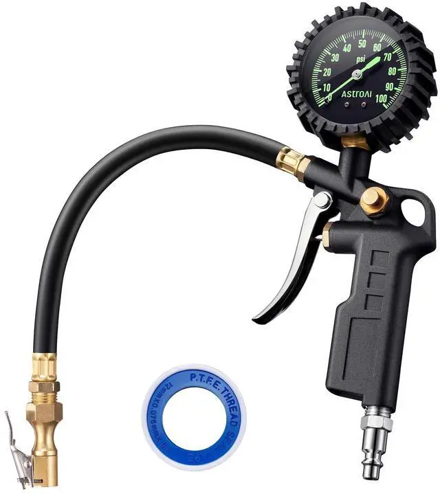 AstroAI Accurate 2.5" Glow Dial Tire Inflator with Pressure Gauge 100 PSI