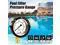 ADJUSTABLE BEZEL & PRESSURE RANGE INDICATOR The 2-inch dial features bold yellow-on-black markings for easy pressure checks. The adjustable bezel aligns with the START and CLEAN FILTER, with arrows indicating the safe upper and lower pressure limits for optimal filter performance