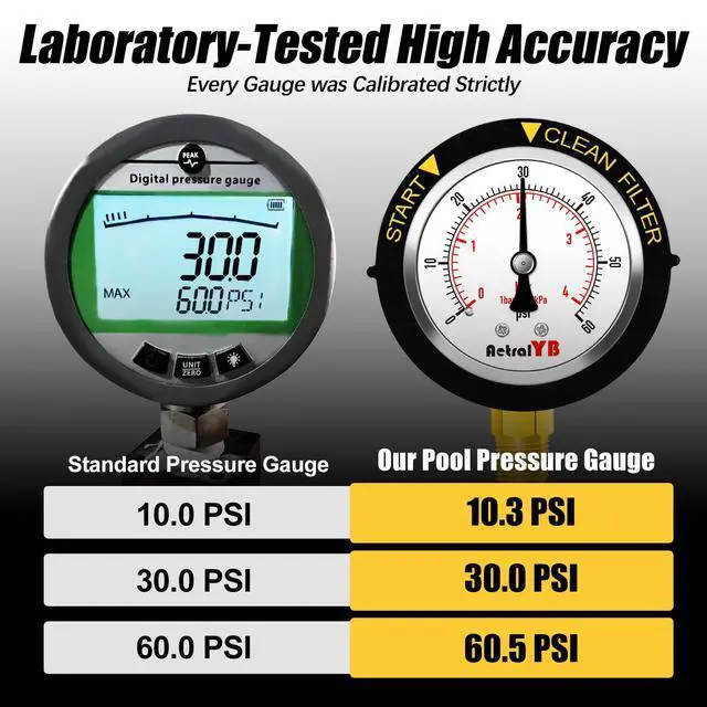 ±2% ACCURACY RELIABLE PRESSURE MONITORING Calibrated to ±2% full-scale accuracy, this gauge provides consistent, trustworthy readings for pool professionals and homeowners alikeessential for maintaining optimal filtration performance