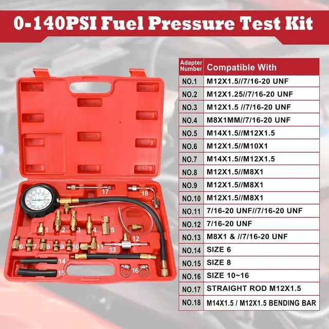 Compatibility Note: The included adapters, hoses and fittings cover most fuel injection systems and Gas Engine Cars, Motorcycles, Trucks, SUVs, ATVs, UTVs, RVs. (Does not compatible with Bosch, CIS Jetronic, TB System on GM vehicles).
