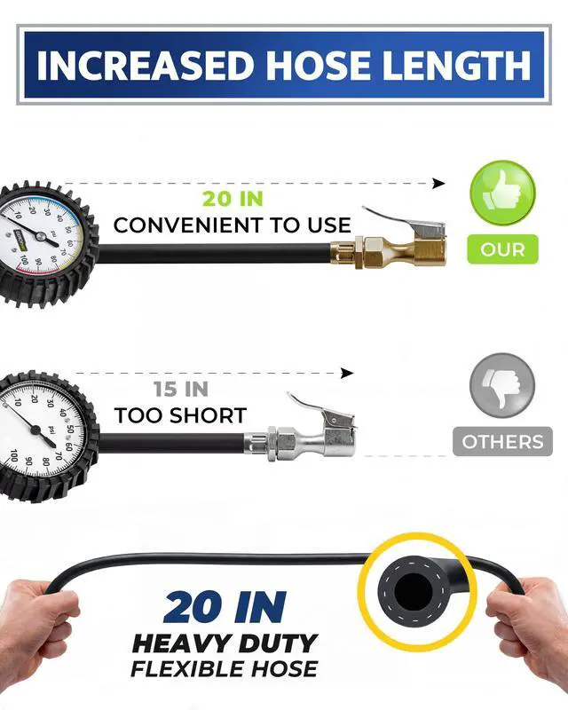 | Type | Tire Pressure Gauge | Tire Pressure Gauge | 3-in-1 Digital Tire Inflator Gauge | 3-in-1 Analog Tire Inflator Gauge | 3-in-1 Analog Tire Inflator Gauge |