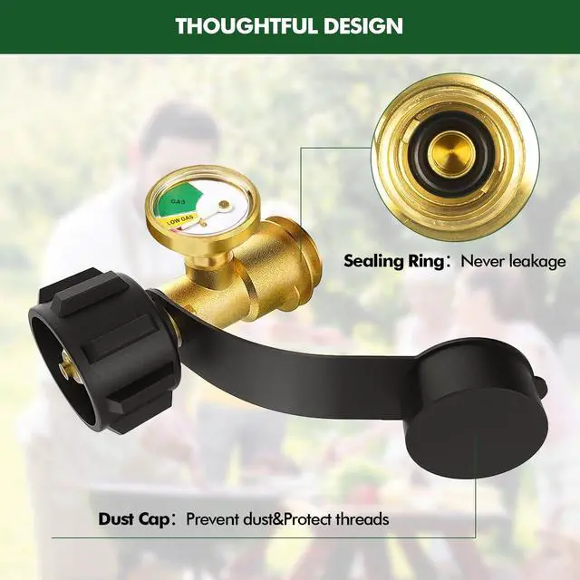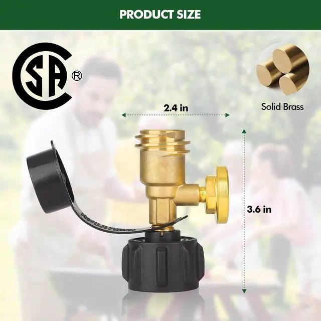90 Degree Propane Tank Refill Adapter with Valve and Gauge