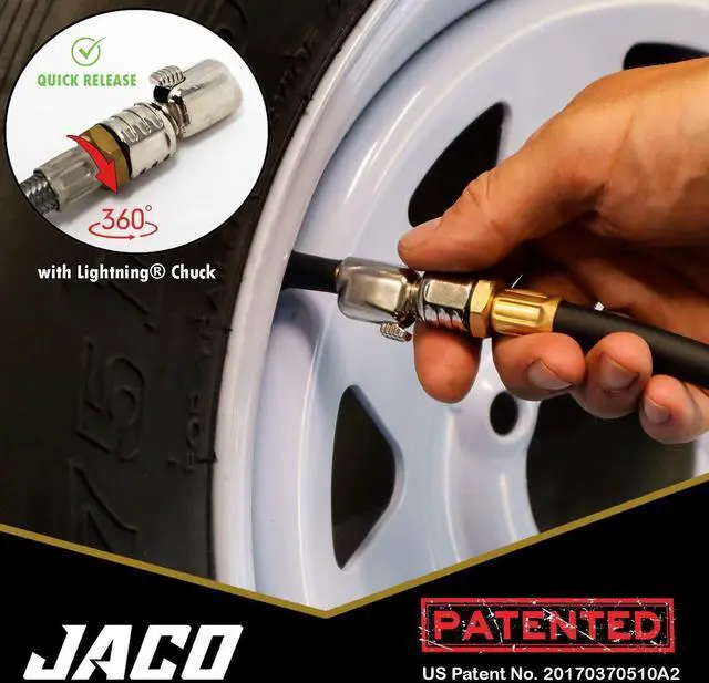 - Lightning Chuck - includes our all-new patented auto lock-on Lightning Air Chuck with advanced locking mechanism & quick-release valve - no more air leaks or fighting the valve stem to get a secure seal.