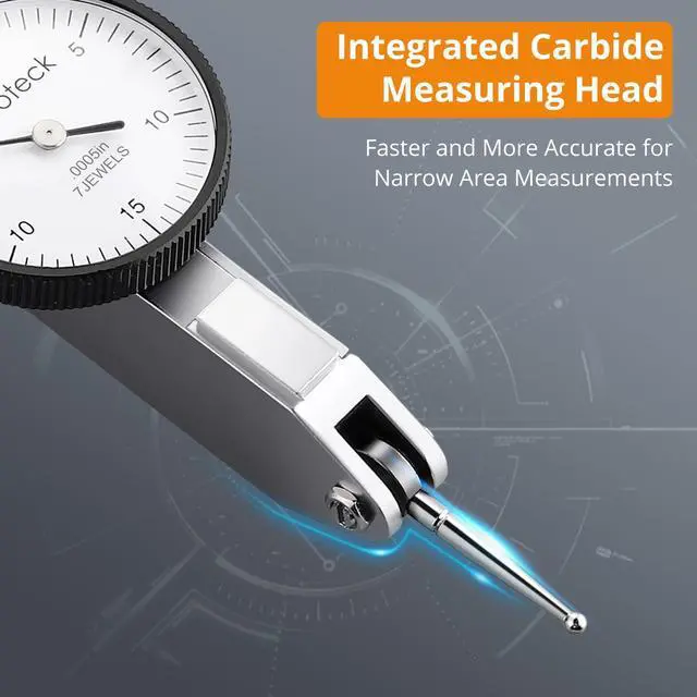 • Accurate Dial Test IndicatorOur test indicator gauge supports measuring range: 0-0.03", accuracy: 0.0005". Whats more, the indicator comes with 270° rotating integrated carbide measuring head and quick response so that you can get more accurate and faster measurements