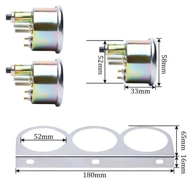 - 3in1 Set: Volt Meter + Oil Pressure Gauge + Water Temperature Gauge