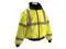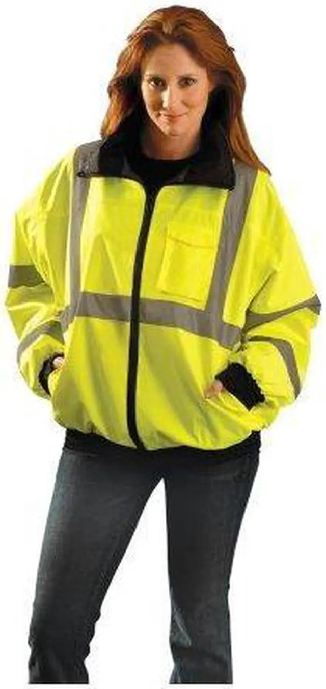 Jacket, Garment Type Jacket, Length Type Waist, Style Bomber Jacket, Back Stripe Pattern U, ANSI Class 3, ANSI Type R, Gender Unisex, Front Closure Type Zipper, Color Yellow, Size 3XL, Number of Outside Pockets 3, Includes Hood Yes, Hood Style Packable Hood in Collar, Maximum Chest Size 56 in, Material Polyester, Temperature Rating 5 Degrees to 50 Degrees F, Includes Removable Liner No, Reflective Stripe Border Type None, Garment Features None, Standards ANSI/ISEA 107-2015 Class 3 - Type R