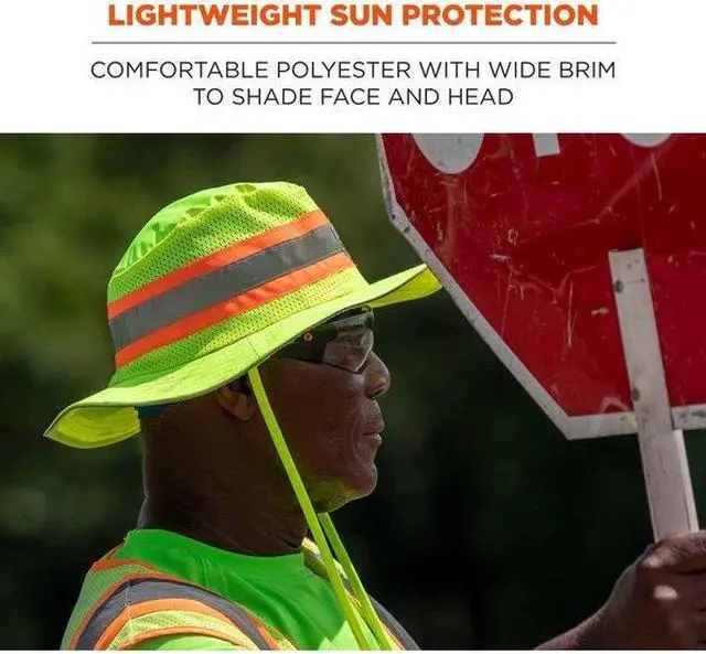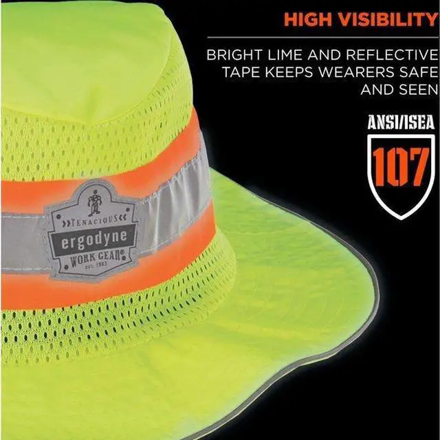 Ranger Hat, Wide Brim, Hi-Visibility Lime, Size L/XL, Material Polyester With Mesh Venting Panels, Slide Cord Adjustment Type, Standards ANSI 107-Class Headwear, ANSI Certified 150 Denier. This item has been restricted from sale in the following state (s): []