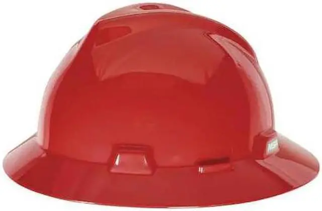 Hard Hat, ANSI Classification Type 1, Class E, Head Protection Style Full Brim, Head Protection Suspension Type Ratchet (4-Point), Head Protection Color Red, Head Protection Graphics No Graphics, Fits Hat Size 6-1/2 to 8, Head Protection Material Polyethylene, Accessory Mounting Options Side-Slots, Head Protection Venting No, High Visibility No, Standards ANSI Z 89.1 -2014, CSA Z 94.1 -2015, Series V-Gard (R). This item has been restricted from sale in the following state (s): []
