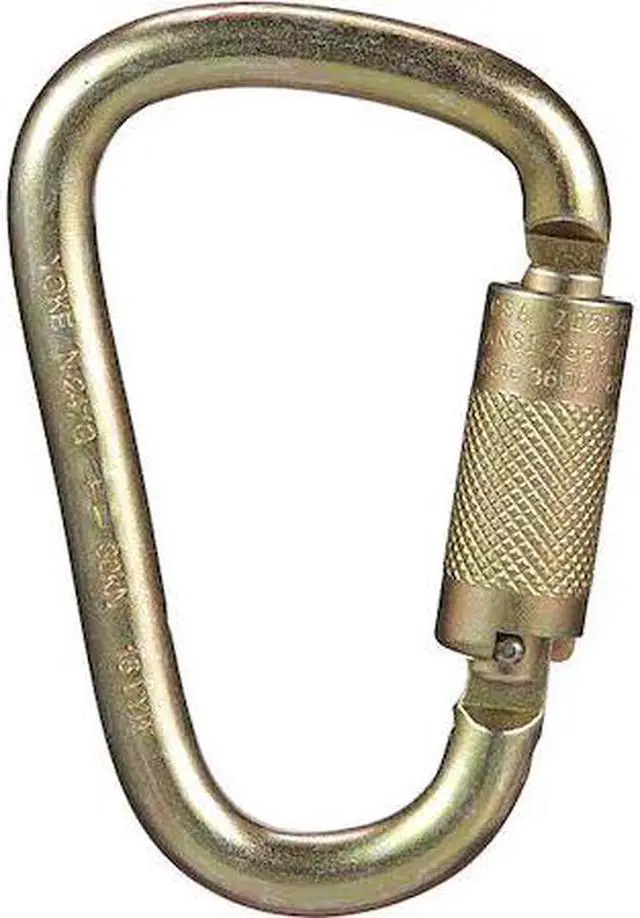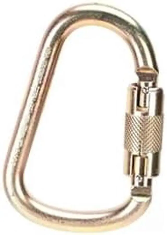 Carabiner, Brand and Series MSA Safety, Captive Eye or Pin No, Carabiner Shape Pear, Color Silver, Gate Opening 1 in, Includes Retaining Pin No, Lock Type Double-Action Twist Lock, Material Steel, Overall Length 5 in, Overall Width 3.25 in, Standards ANSI Z 359.12, Tensile Strength 5000 lb, Weight Capacity 400 lb. This item has been restricted from sale in the following state (s): []