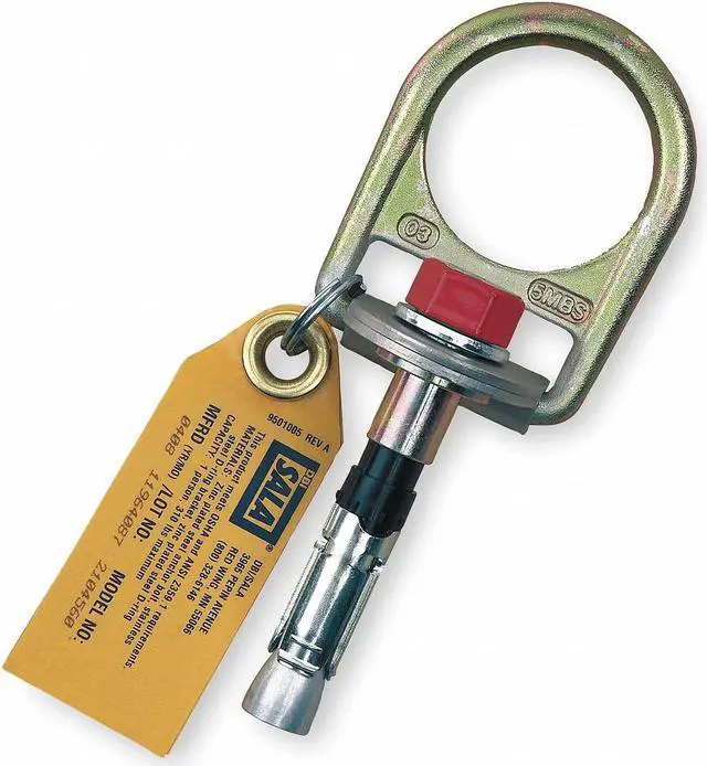 Concrete Anchor, Anchor Installation Permanent, Reusable, Anchor Material Stainless Steel, Anchor Style D-Ring, Attachment Point Swivel D-Ring, Bolt Length 4 1/8 in, Brand and Series 3M DBI-SALA, Concrete Strength 3, 000 psi, For Hole Dia. 11/16 in, For Wall Thickness 6 1/4 in, Includes Mounting Hardware Yes, Max. Hole Depth 4 1/2 in, Mounting Hole Dia. 11/16 in, Mounting Type Screws, Number of Mounting Holes 1, Overall Length 5 3/4 in, Ring Inside Dia. 3 in, Standards OSHA, ANSI, ASTM E488.