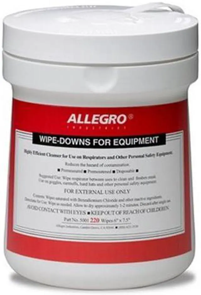 Respirator Wipes, Solution Type Benzalkonium Chloride and Alcohol, Size 6 In. x 7-1/2 In., Package Quantity 220