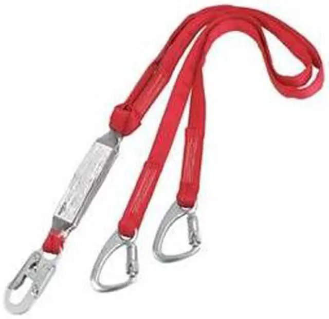 Shock-Absorbing Lanyard, Color Red, Visual Load Indicator Yes, Hardware Material Steel, Shock-Absorbing Lanyard Material Polyester, Shock Absorbing Type Shock Pack, Number of Legs 2, Weight Capacity 310 lb, Anchorage End Connection Type Tie-Back, Adjustable Length No, Harness End Connection Snap Hook, Anchorage End Connection Material Steel, Harness End Connection Material Steel, Maximum Working Length 6 ft, ANSI Standards Met ANSI Z 359.1, OSHA Standards Met OSHA 1910.66, OSHA 1926.502. This item has been restricted from sale in the following state (s): []