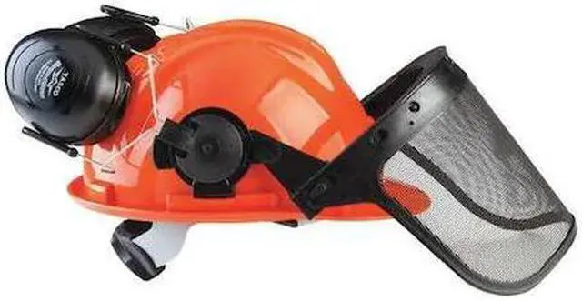 Hard Hat, ANSI Classification Type 1, Class E, Head Protection Style Front Brim, Head Protection Suspension Type Ratchet (6-Point), Head Protection Color Orange, Head Protection Graphics No Graphics, Fits Hat Size 6 to 8-5/8, Head Protection Material Polyethylene, Head Protection Venting No, High-Visibility No, Standards Hard Hat ANSI Z 89.1 -2014, Earmuffs ANSI S 3.19 -1974, Face Shield Z 87.1 -1997, Series Woodsman