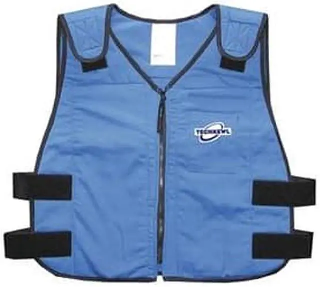 Cooling Vest, Cooling Method Cold Pack Inserts, Color Blue, Garment Type Vest, Features Hook-and-Loop Girth and Shoulder Adjustments, Thermal Liner, Material Cotton, Closure Type Zipper, Size 2XL, Maximum Cooling Time 2 to 3 hr, Length 27 in, High-Visibility No, Back Stripe Pattern None, Cooling Temperature 58 Degrees F, Secondary Hazard None, Maximum Chest Size 48 in, Minimum Chest Size 46 in, Includes (4) Cool Packs, Cooler Bag, Includes Battery No, Includes Cooling Inserts Yes. This item has been restricted from sale in the following state (s): []